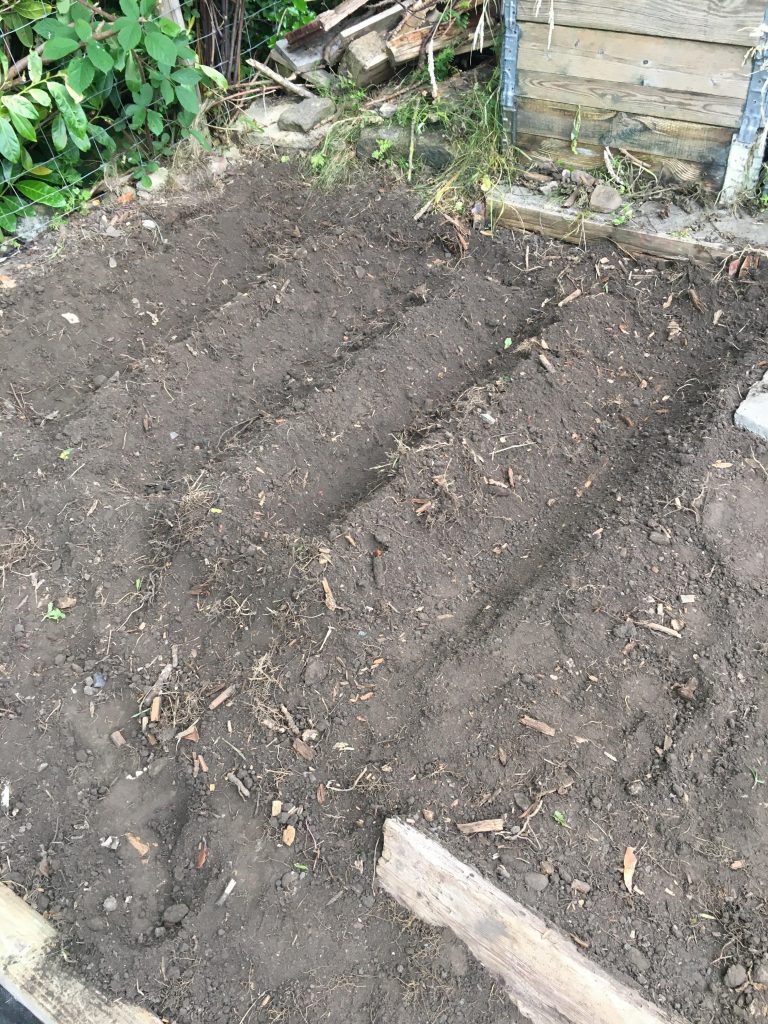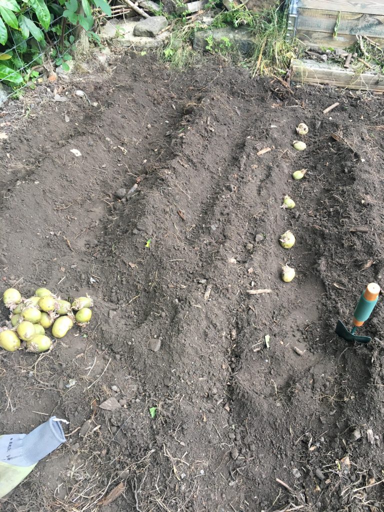 Although I hadn’t planned to plant anything this year I decided to plant some potatoes. Weve managed to weed the patch at the very top of the allotment and I have a few old potatoes at home which are now no good for cooking. Also I have some new toys I want to play with.